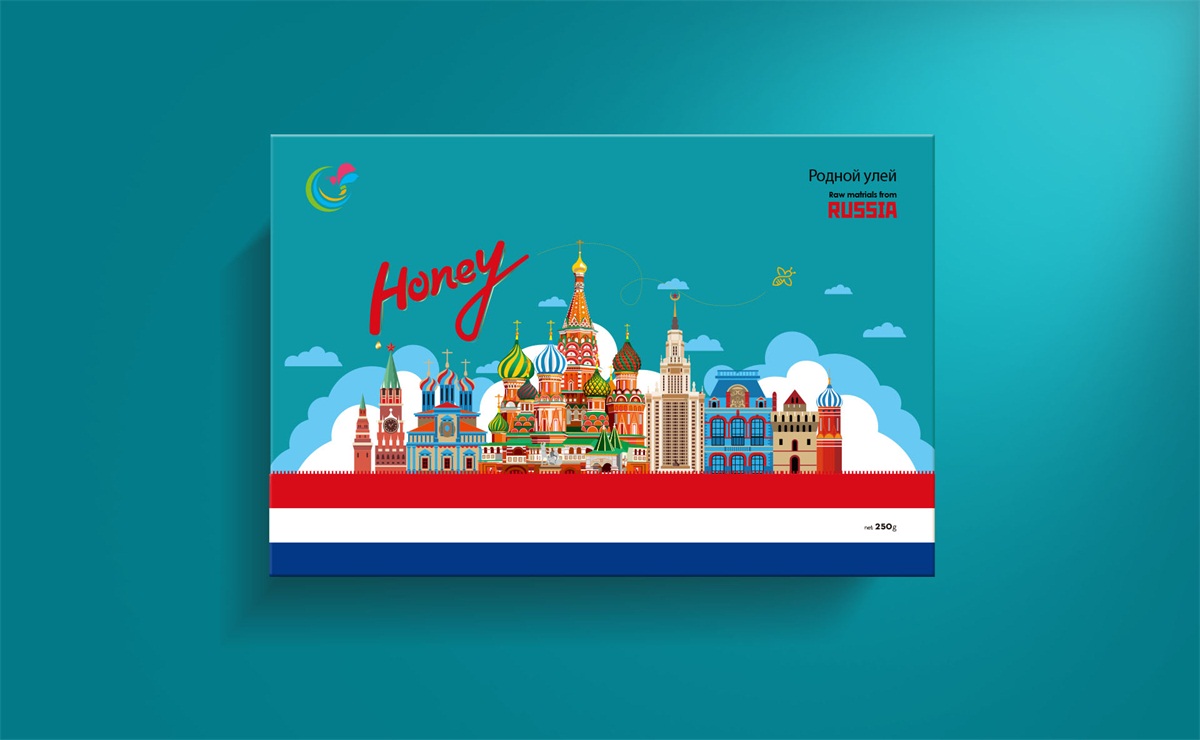 蜂還巢俄羅斯彩色蜂蜜精選天然成熟蜂蜜經多重過濾精制而成,選材考究,這個系列包裝彩用玻璃瓶灌裝設計
